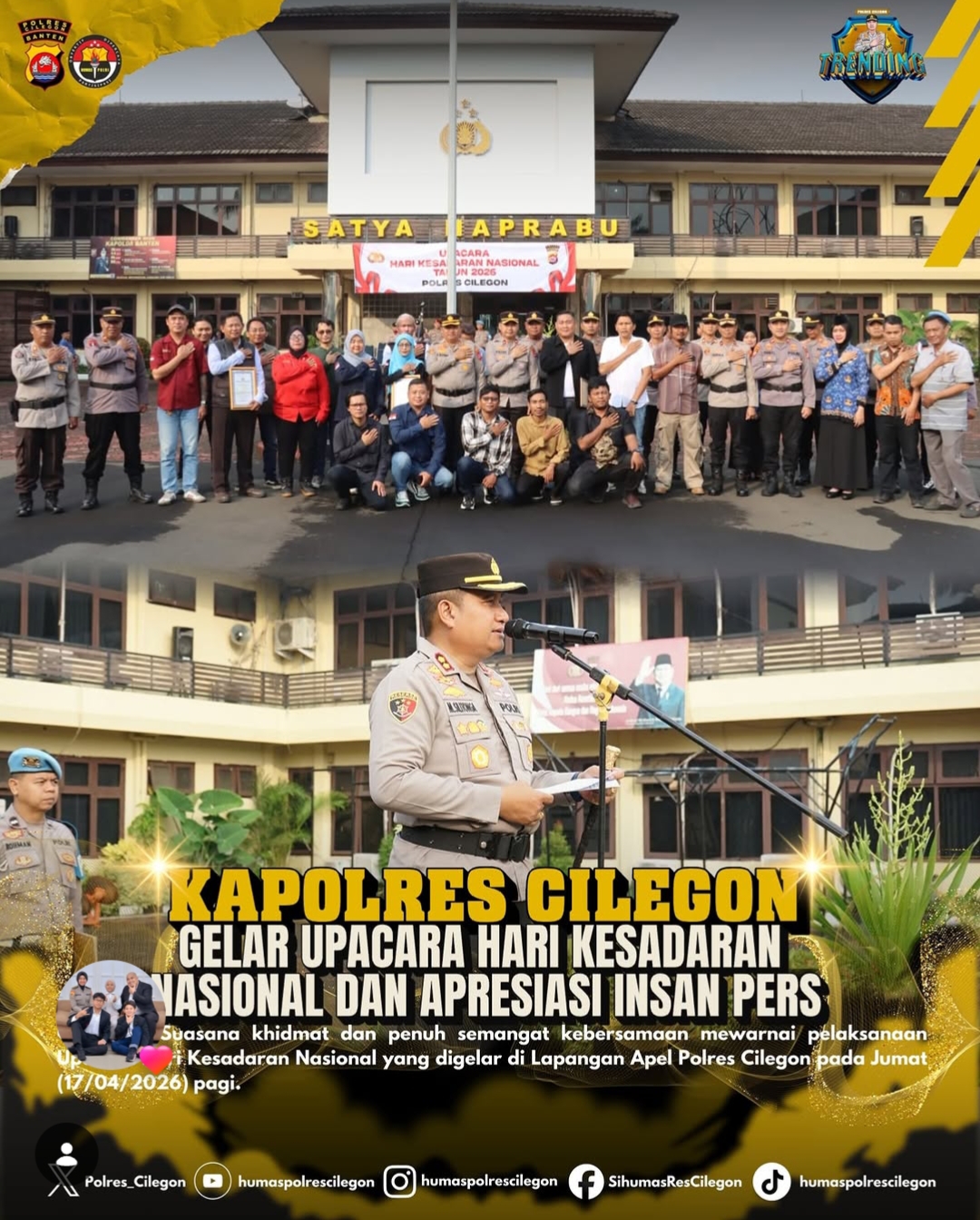 -POLRES CILEGON – Polda Banten. Personil Bhabinkamtibmas Polsek Purwakarta, Polres Cilegon, Aiptu Wawan Setiabudi, melaksanakan kegiatan patroli dialogis di Pos Ronda Lingkungan Panesepan, Kelurahan Tegalbunder, Kecamatan Purwakarta, Kota Cilegon, pada Senin (20/4/2026) malam. Kegiatan ini bertujuan untuk mempererat hubungan silaturahmi serta memantau langsung situasi keamanan dan ketertiban masyarakat (kamtibmas) di wilayah...