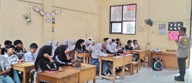 -POLRES CILEGON-Polda Banten. Personil Bhabinkamtibmas Bripka Nugraha B Memberikan Penyuluhan di Tengah Siswa-Siswi Bulliying di Lingkungan Sekolah dan Bahayanya Narkoba di Kalangan Remaja Di SMK INFORMATIKA Kelurahan Purwakarta Kecamatan Purwakarta Kota Cilegon.Rabu.(03-09-2025)