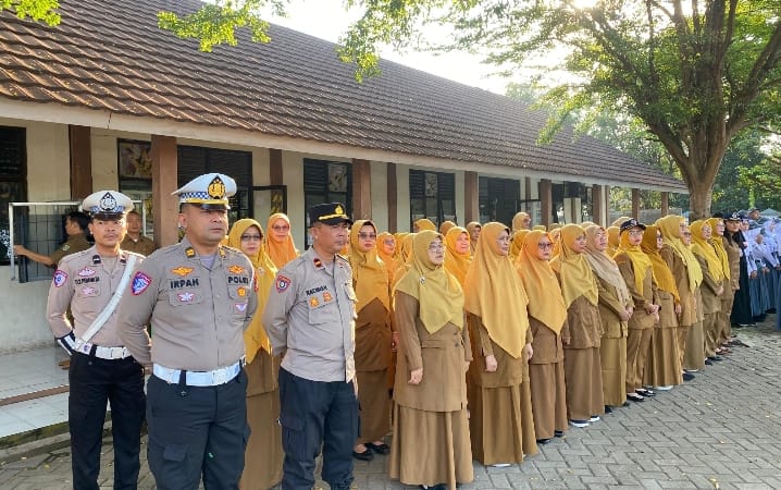 -POLRES CILEGON- Polda Banten.Dalam Rangka Menjalin Kemitraan Kanit Binmas ipda Surahman Polsek Purwakarta Polres Cilegon Mendampingi Dit Lantas Polda Banten Melaksanakan Pembina Upacara Pengibaran Bendera Merah Putih di sekolah SMA NEGERI 2 KS Kelurahan Kotabumi Kecamatan Purwakarta Kota Cilegon, Senin.(08/09/2025).
