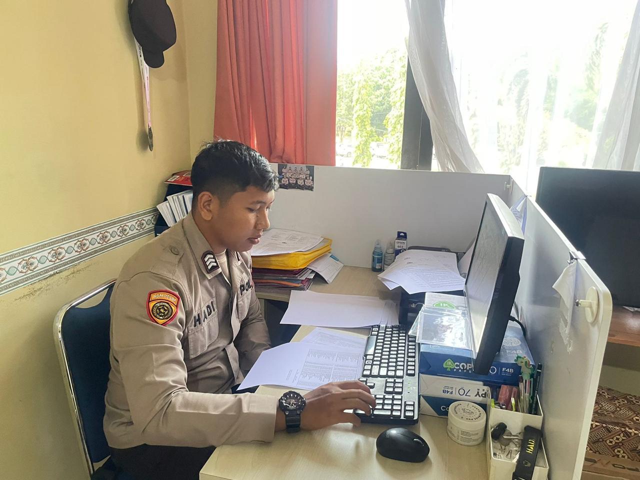 Anggota bag sdm Polres Cilegon, Melaksanan monitorring dan update aplikasi SIPP Polres Cilegon.