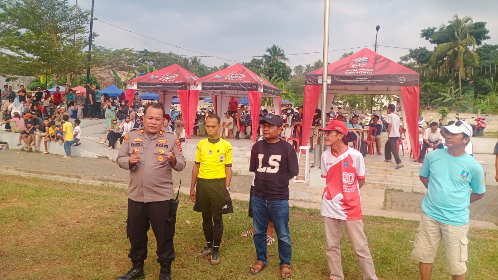 Kapolres Cilegon Polda Banten AKBP Dr. Martua Raja Taripar Laut Silitonga melalui Kapolsek Mancak IPTU KHAIRUL bersama 7 anggota Polsek Mancak melaksanakan pengamanan Turnamen Sepak Bola Antar RT se-Desa Labuan Kec.Mancak Tahun 2025 di lapangan Alun-alun Mancak.
