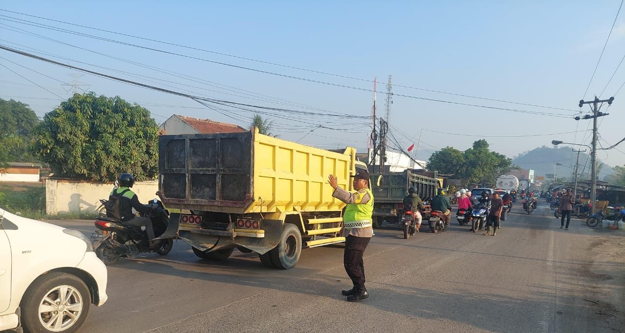 Aman Di Jalan Raya, Brigadir Andri dan Bripka Geri Polsek Bojonegara Laksanakan Pengaturan Lalu Lintas