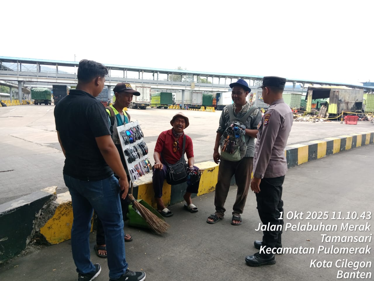 Cilegon - Personel Polsek Kskp Merak Polres Cilegon Polda Banten melaksanakan sambang dan patroli kawasan pelabuhan merak dalam rangka menjaga Harkamtibmas di Kawasan Pelabuhan Merak, Rabu (01/10/2025).