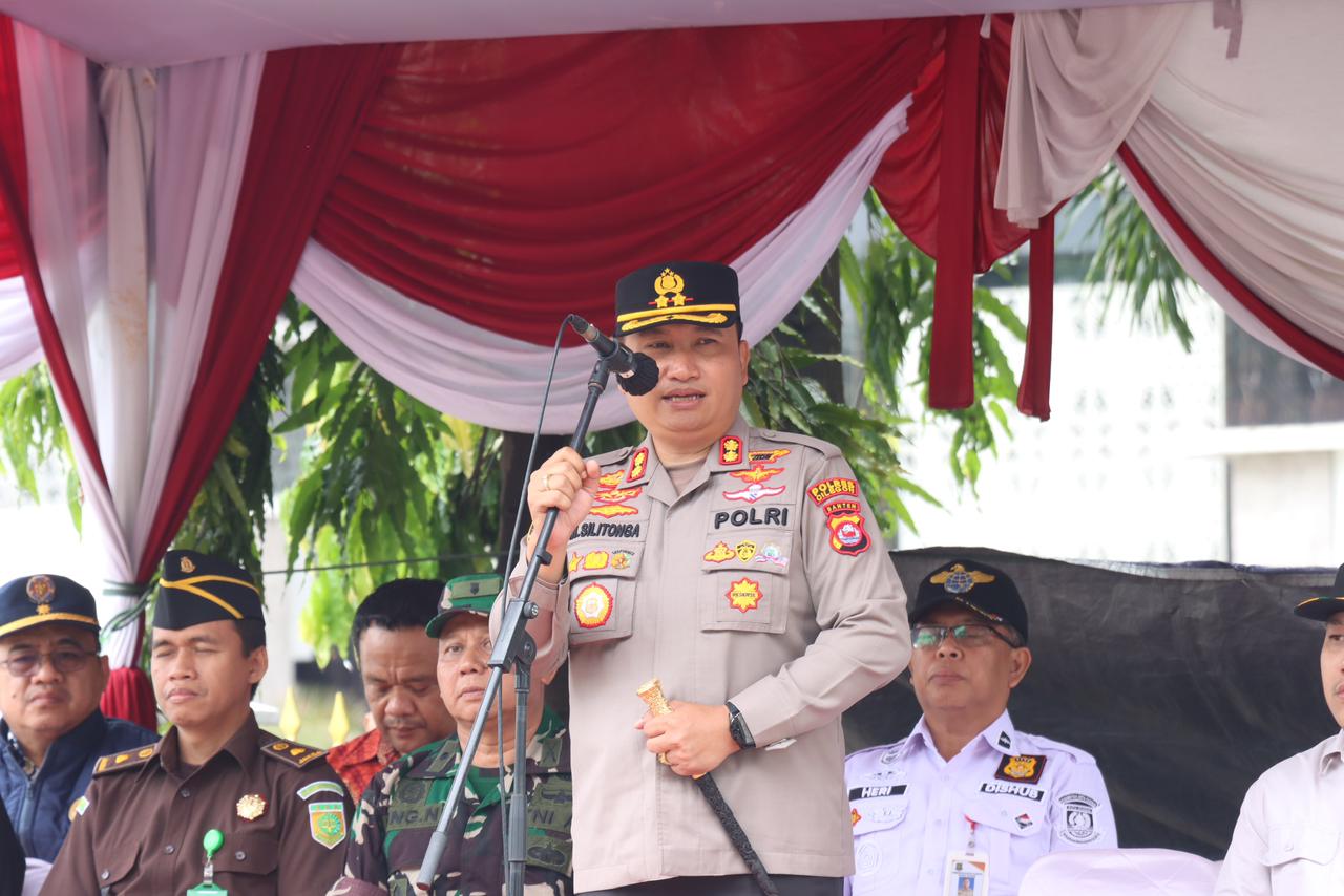 Kapolres Cilegon, AKBP Dr. Martua Raja Taripar Laut Silitonga, S.H., S.I.K., M.Si., yang bertindak sebagai penanggung jawab kegiatan, memimpin apel pembukaan sekaligus memberikan amanat. Dalam arahannya, Kapolres menekankan bahwa simulasi ini bukan hanya bersifat seremonial, melainkan bentuk nyata kesiapan aparat dalam menghadapi potensi gangguan kamtibmas.