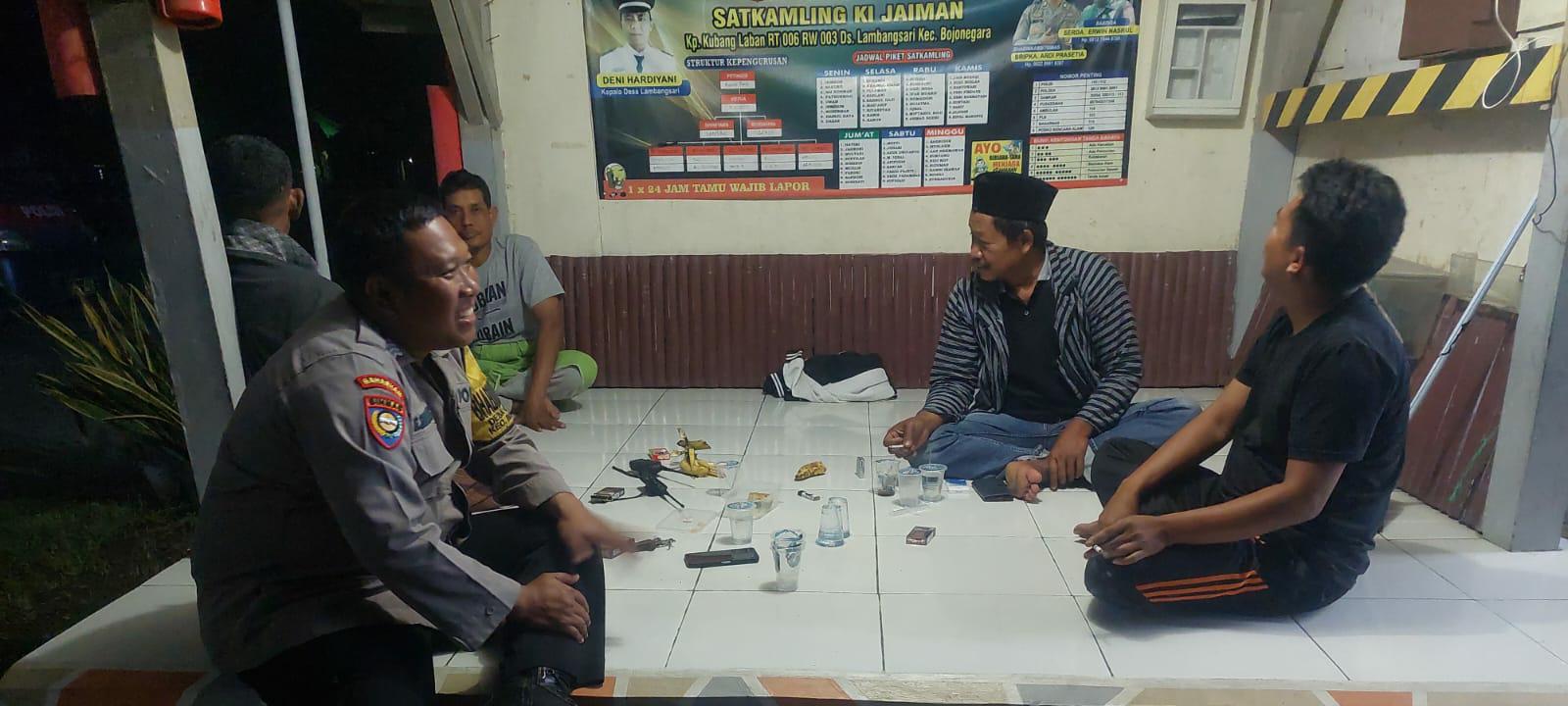 Cilegon ~ Dalam rangka membina hubungan yang baik dan sinergitas antara aparat keamanan dengan seluruh unsur masyarakat, Kanit Provost dan Bhabinkamtibmas Polsek Bojonegara Polres Cilegon melakukan kegiatan sambang malam hari dan Kontrol Pos Ronda dengan bersilaturrahmi terhadap masyarakat di Desa Kertasana, Jumat ( 03/10/2025)