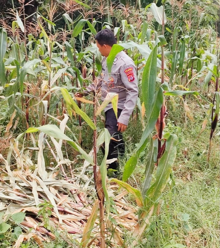 Terjun ke kebun Jagung Bhabinkamtibmas Bantu Panen jagung bersama warga binaanya