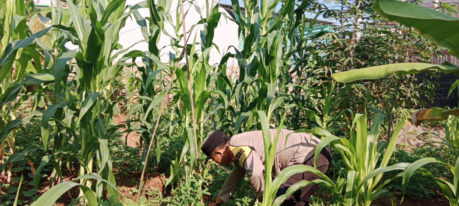 Oleh sebab itu Kapolsek Pulomerak dan  bhabinkamtibmas polsek Pulomerak bersama masyarakat tani Kel. Mekarsari kec. Pulomerak saat ini lakukan perawatan tanaman jagung, ujarnya