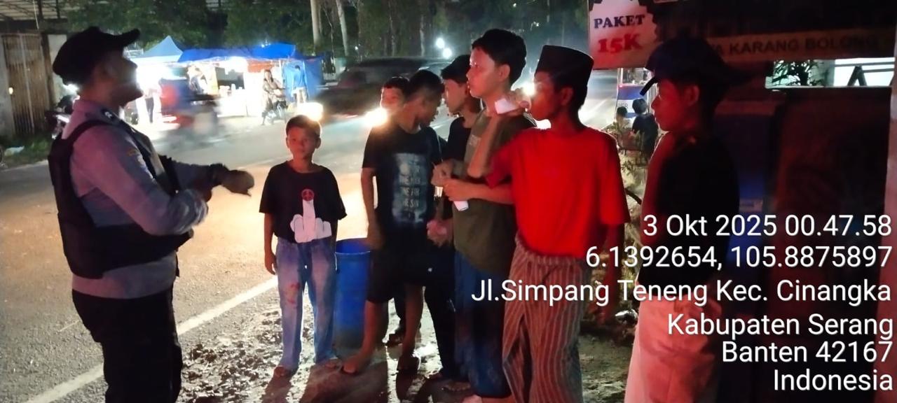 -*POLRES CILEGON*-Polda Banten. Dalam rangka Menjaga situasi kamtibmas kondusif mencegah terjadinya gangguan Kamtibmas Premanisme, Kriminalitas di wilayah Personil Piket Polsek Cinangka mencegah dan Menekan Para Pelaku kejahatan dengan Patroli Blue Light yang di Lakukan Polsek Cinangka gencar Patroli Blue Light dini hari di Wilkum Cinangka Kab Serang . Jumat (03/10/2025)