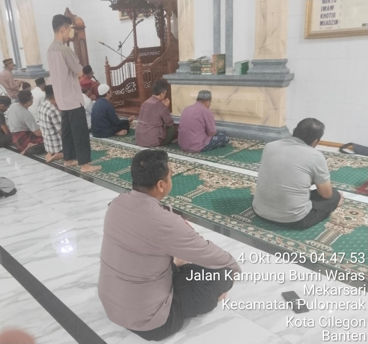 “Dalam kegiatan tersebut, Personil Polsek Kp Polres Cilegon Polda Banten turut berbaur dengan jemaah masjid dalam melaksanakan shalat subuh berjamaah. Setelah itu, dilakukan dialog interaktif antara petugas kepolisian dan masyarakat untuk mendengarkan aspirasi serta memperoleh masukan terkait dengan situasi keamanan dan ketertiban di lingkungan sekitar,” tambah Kapolsek.