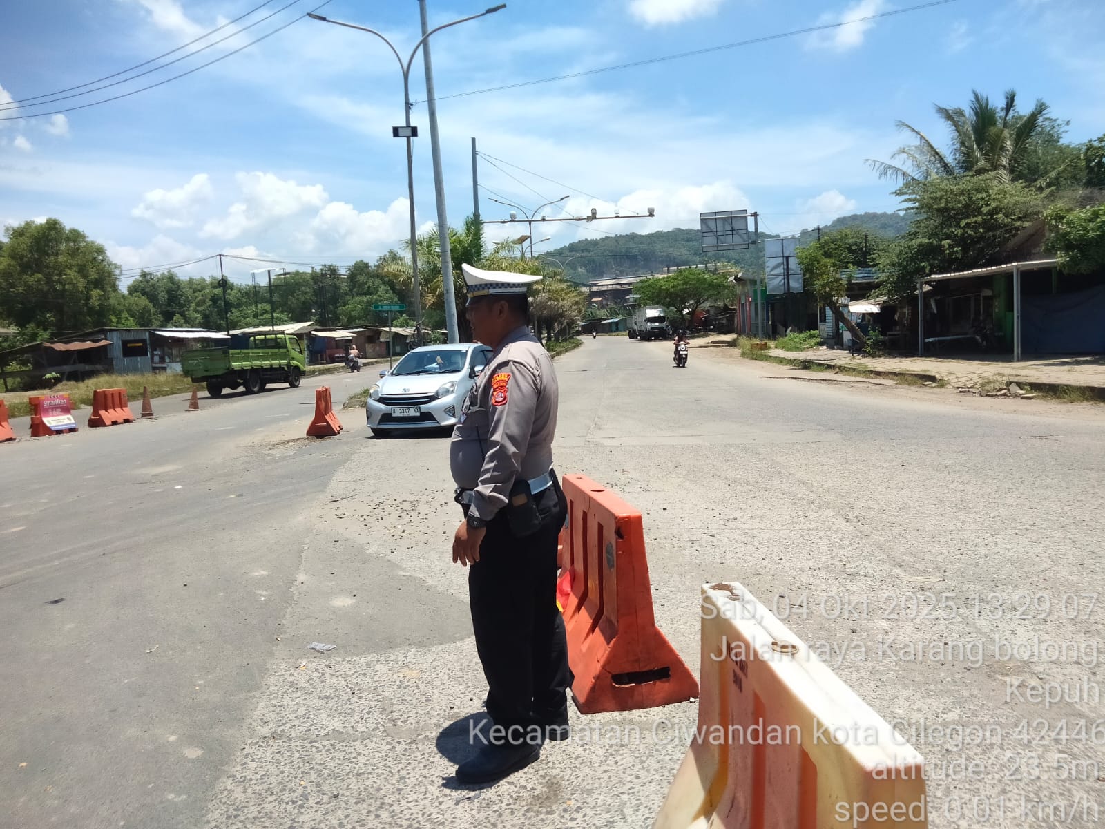 Cilegon - Pada Weekend kali ini Personil Unit Lantas Polsek Ciwandan Polres Cilegon Polda Banten melaksanakan pengaturan lalu lintas di Simpang JLS tepatnya di Pertigaan depan PT. Semen Indonesia Demi Kelancaran Arus Lalu-lintas Wisata, Sabtu (04/10/2025).