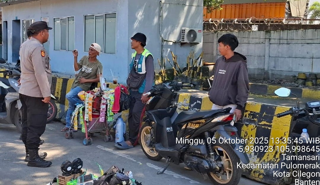 Cilegon - Personel Polsek Kskp Merak Polres Cilegon Polda Banten melaksanakan sambang dan patroli kawasan pelabuhan merak dalam rangka menjaga Harkamtibmas di Kawasan Pelabuhan Merak, Minggu (05/10/2025).