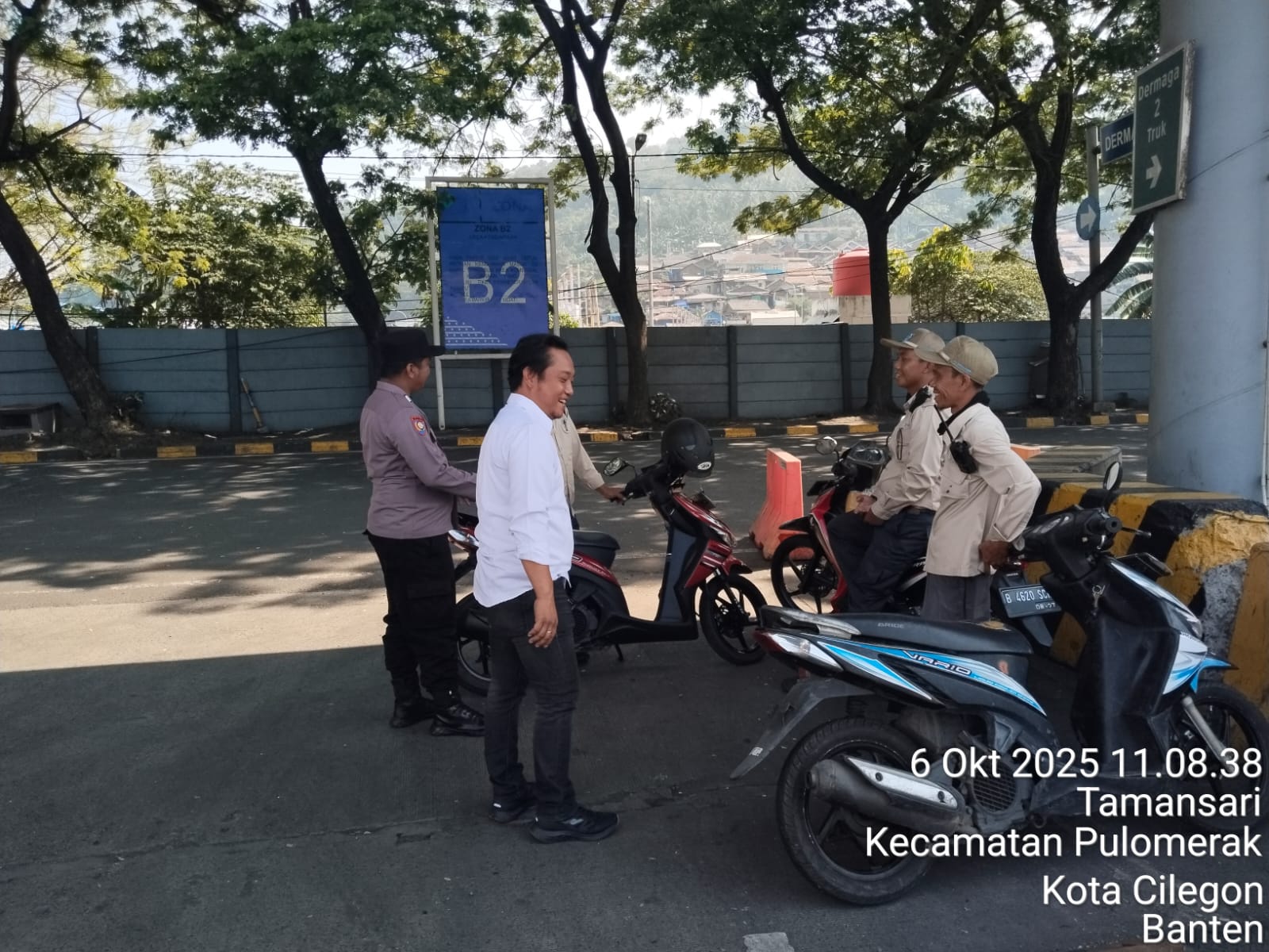 Cilegon - Personel Polsek Kskp Merak Polres Cilegon Polda Banten melaksanakan sambang dan patroli kawasan pelabuhan merak dalam rangka menjaga Harkamtibmas di Kawasan Pelabuhan Merak, Senin (06/10/2025).