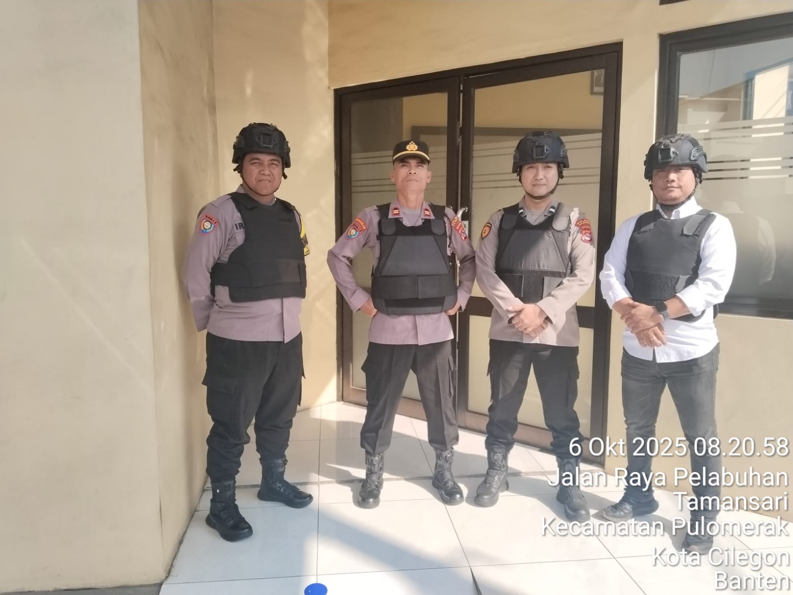 Cilegon - Personel piket jaga Polsek Kskp Merak Polres Cilgon Polda Banten melaksanakan siaga 1 Polsek pelaksanaan Sispam Mako oleh piket siaga dipimpin oleh Kspk Polsek Kskp Merak Polres Cilegon Polda Banten, Senin (06/10/2025).