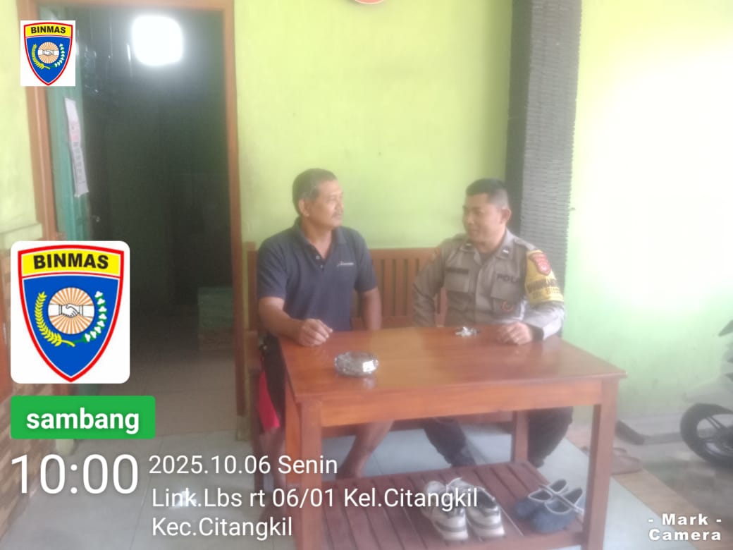 Cilegon -  Bhabinkamtibmas Polsek Ciwandan Polres Cilegon Polda Banten Melalui Sambang Dialogis menjaga kamtibmas selalu kondusif dan aman serta untuk mengetahui situasi dan kondisi terkini yang ada di Daerah binaannya,Sekaligus sebagai sarana silaturahmi dengan berbagai elemen yang ada di masyarakat, Senin (06/10/2025).