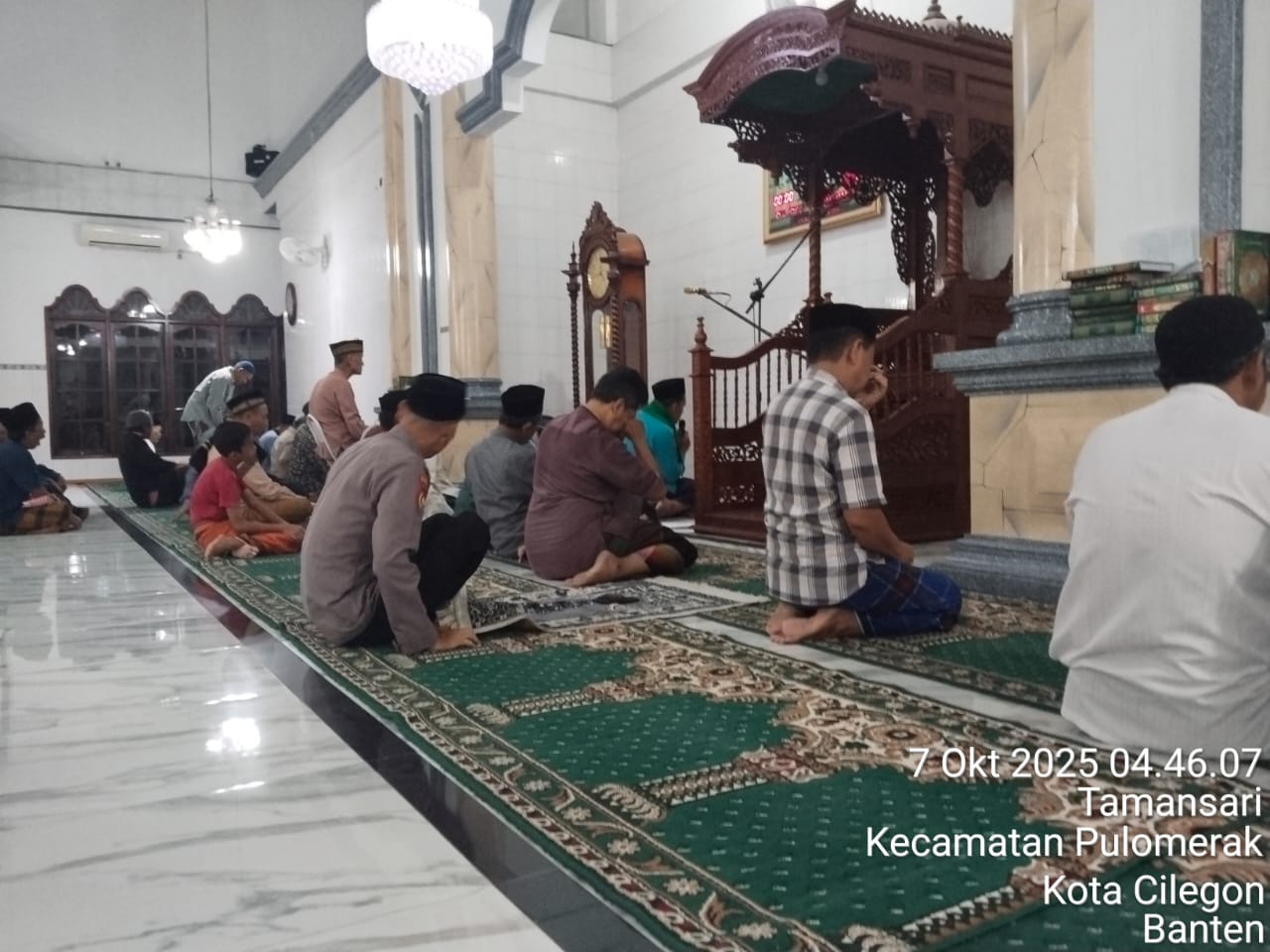 “Dalam kegiatan tersebut, Personil Polsek Kp Polres Cilegon Polda Banten turut berbaur dengan jemaah masjid dalam melaksanakan shalat subuh berjamaah. Setelah itu, dilakukan dialog interaktif antara petugas kepolisian dan masyarakat untuk mendengarkan aspirasi serta memperoleh masukan terkait dengan situasi keamanan dan ketertiban di lingkungan sekitar,” tambah Kapolsek.