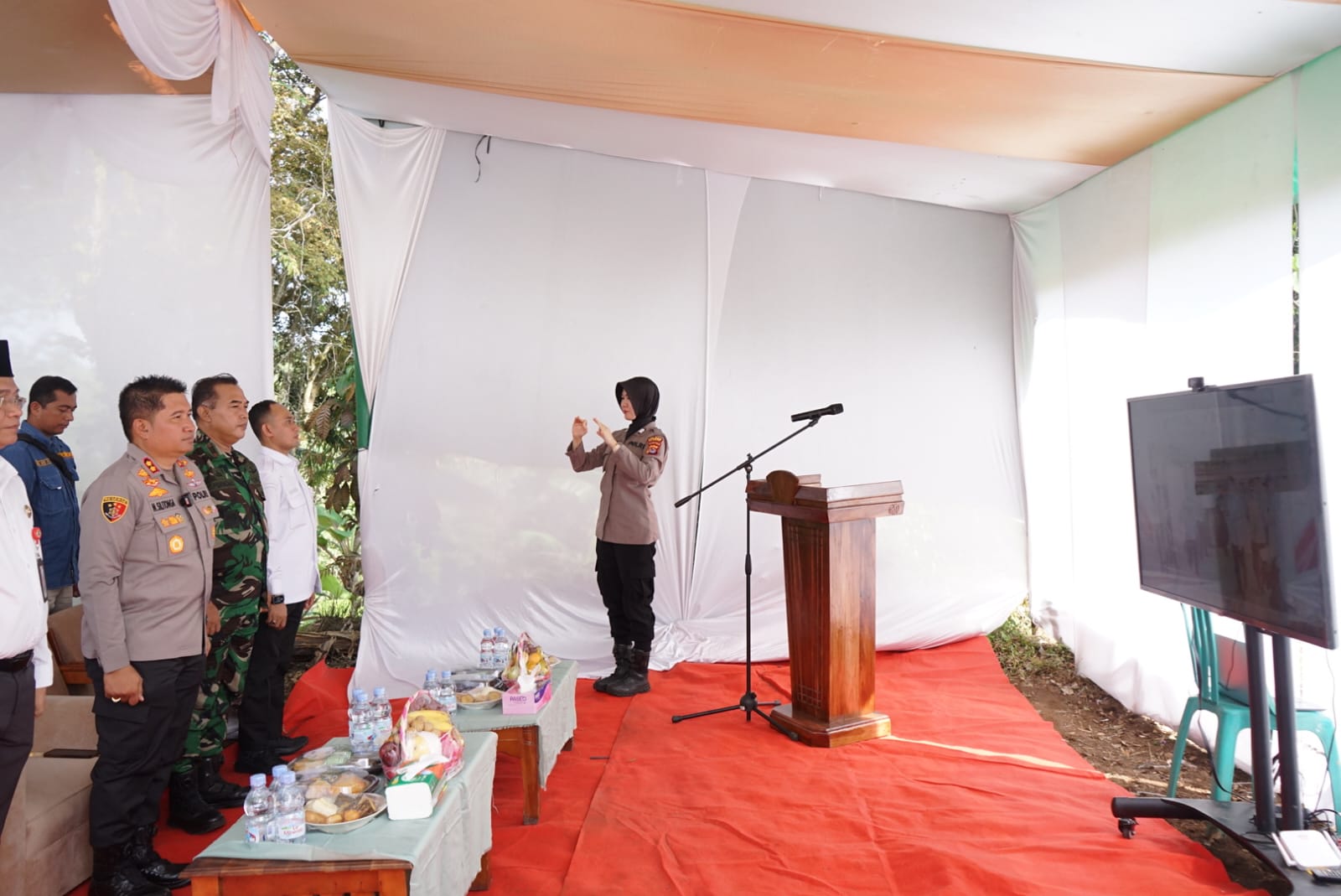 Dalam kesempatan tersebut, Kapolres Cilegon didampingi Wakapolres Cilegon Kompol Arif Nazaruddin Yusuf, S.H., S.I.K., M.H., bersama para Pejabat Utama Polres Cilegon, unsur Forkopimcam Anyer, dan perwakilan instansi terkait. Sebelum pelaksanaan Zoom Meeting, Kapolres meninjau langsung kegiatan operasi pasar murah, bakti sosial, dan bakti kesehatan yang turut dilaksanakan di lokasi sebagai bagian dari rangkaian kegiatan Polres Cilegon untuk mendukung kesejahteraan masyarakat.