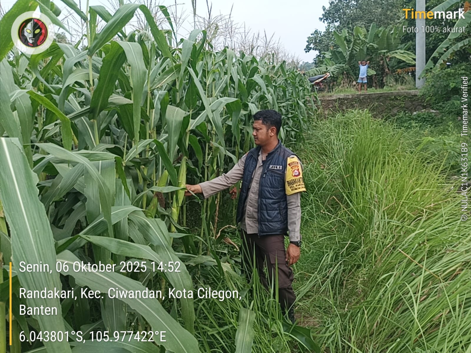 Cilegon - Dalam rangka memberikan dukungan kepada Pemerintah terkait Ketahanan pangan, Bhabinkamtibmas Ciwandan Polres Cilegon Polda Banten melaksanakan Implementasikan Program Asta Cita Presiden dengan fokus pada sektor Pertanian tanaman Jagung dilingkungan Binaan, Rabu (08/10/2025).