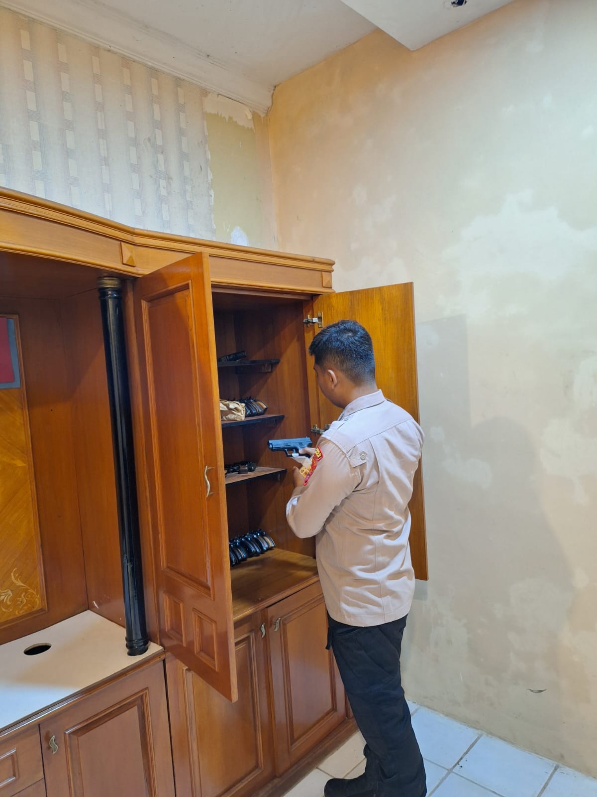 STAFF LOGISTIK MEMBERSIHKAN SENJATA API DI GUDANG