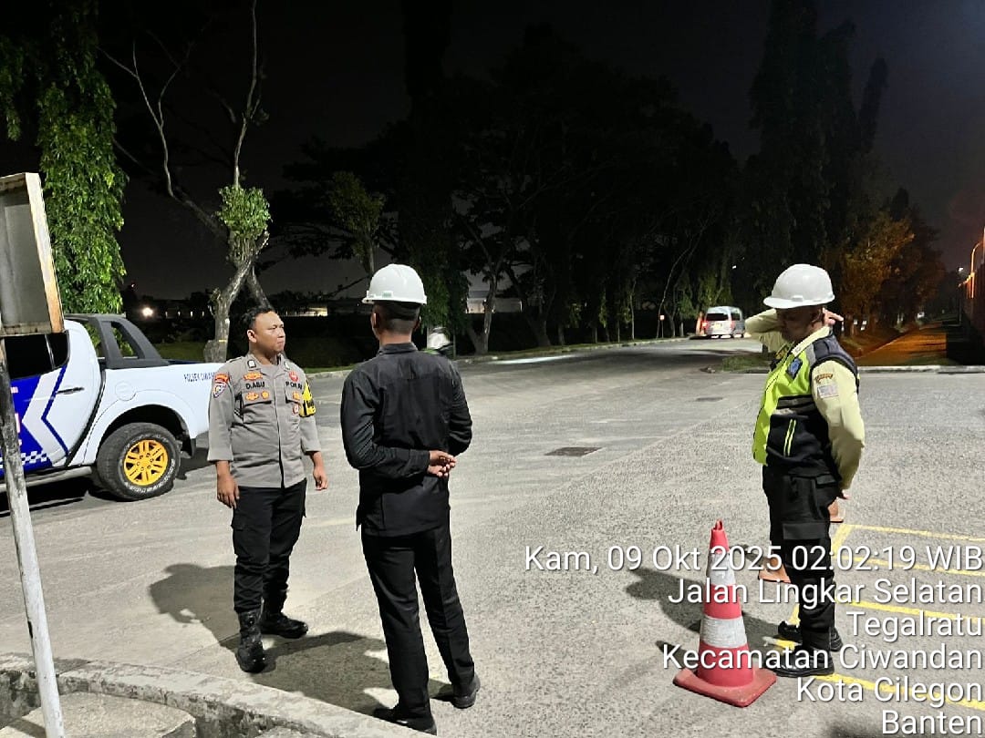 Kapolres Cilegon Polda Banten AKBP Dr. Martua Raja Taripar Laut Silitonga Melalui Kapolsek Ciwandan Polres Cilegon Polda Banten KOMPOL Andi Suherman Mengatakan Pada kesempatan tersebut, Personil Polsek Ciwandan melaksanakan sambang Dan Patroli dialogis dengan memberikan imbauan kepada petugas security perusahaan agar meningkatkan kewaspadaan terhadap situasi di sekitar perusahaan.