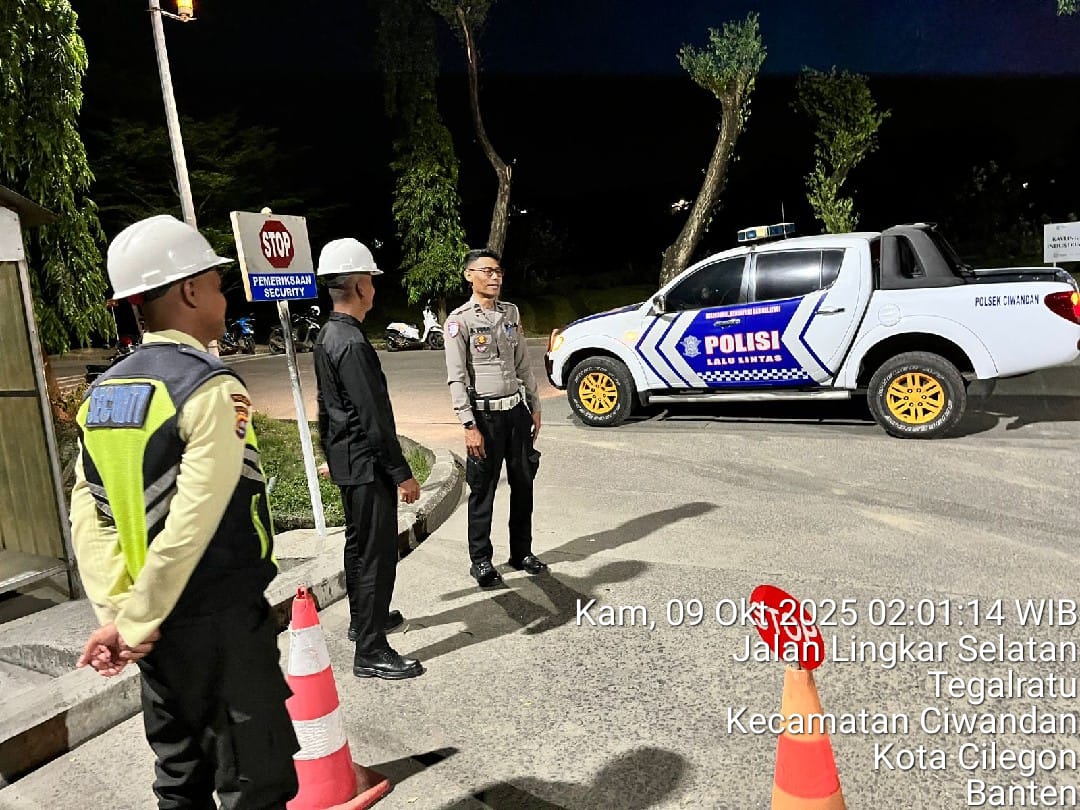 Cilegon - Demi Menjaga keamanan Daerah Hukum Polsek Ciwandan agar tetap kondusif, Personil Polsek Ciwandan Polres Cilegon Polda Banten Melakukan kegiatan sambang kamtibmas Dan Patroli Bersama Security, Kamis (09/10/2025).
