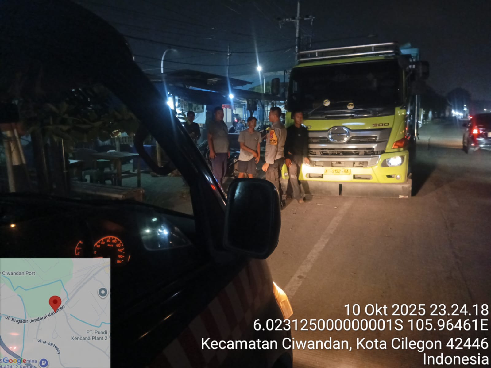 Cilegon - Guna Mencegah Gangguan kamtibmas dan Tindakan Kriminalitas Kejahatan Jalanan,Personil Polsek Ciwandan Polres Cilegon Polda Banten Sampaikan Pesan-Pesan Kamtibmas Kepada Sopir Angkutan Barang, Sabtu (11/10/2025).