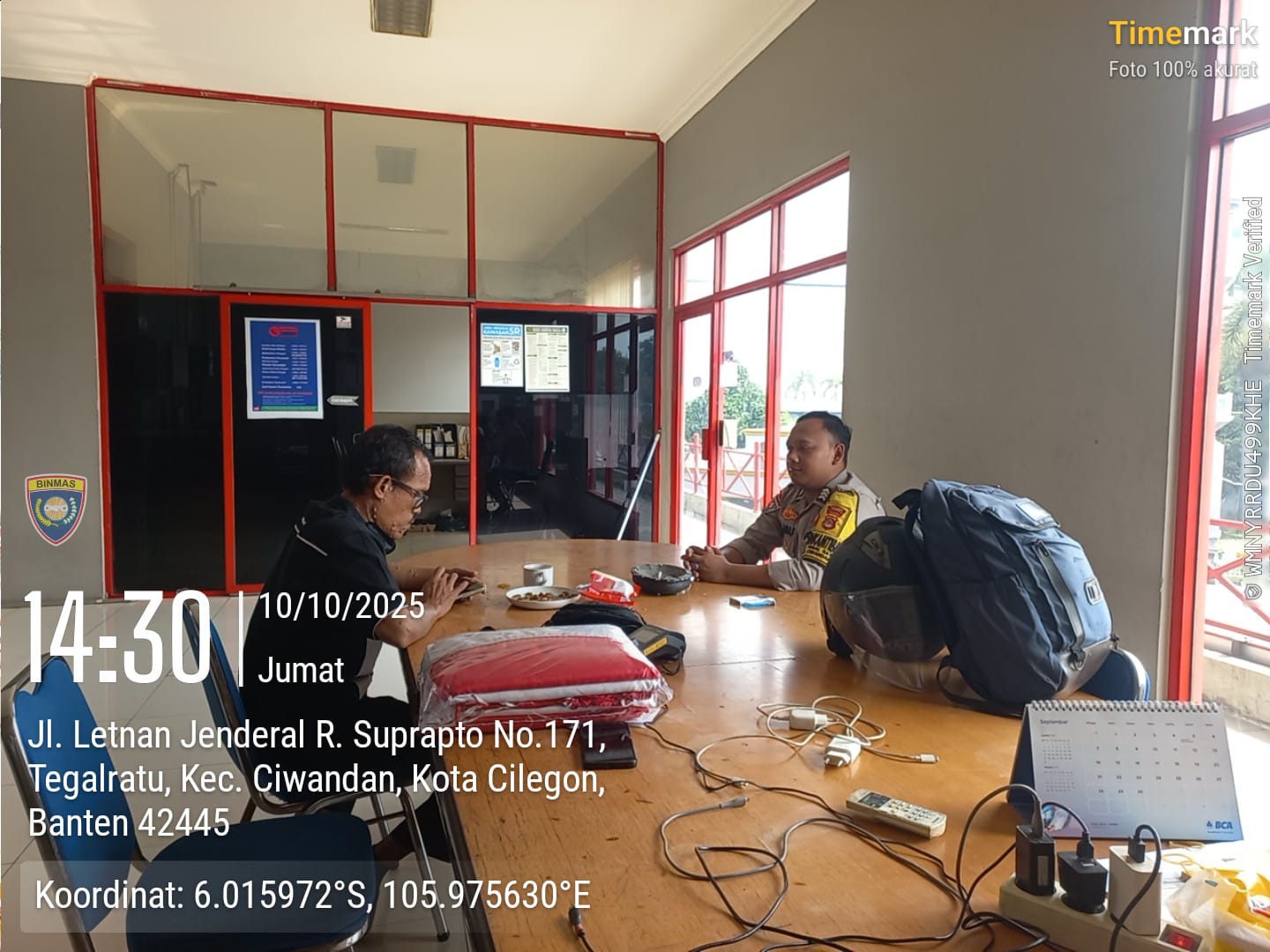 Cilegon – Guna Memastikan Situasi Yang kondusif,Kanit Binmas Beserta Bhabinkamtibmas Polsek Ciwandan Polres Cilegon Polda Banten Sambangi SPBU 34.424.03. Cigading kelurahan Tegalratu Kecamatan Ciwandan Kota Cilegon ,Sabtu (11/10/2025).