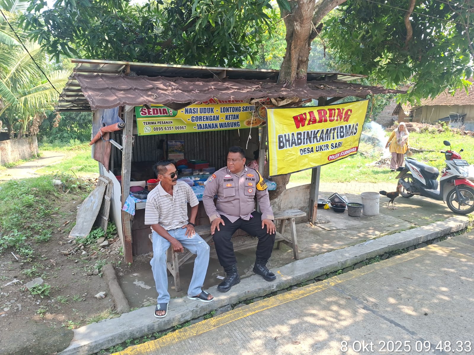 Cilegon ~ Bhabinkamtibmas Polsek Bojonegara Polres Cilegon Polda Banten Sambang dan silaturahmi dengan masyarakat merupakan salah satu tugas seorang bhabinkamtibmas untuk mengetahui situasi Kamtibmas Desa binaan dalam menjalin silaturahmi dengan Warga Desa. Ukirsari di Warung Bhabinkamtibmas, Minggu (12/10/2025).