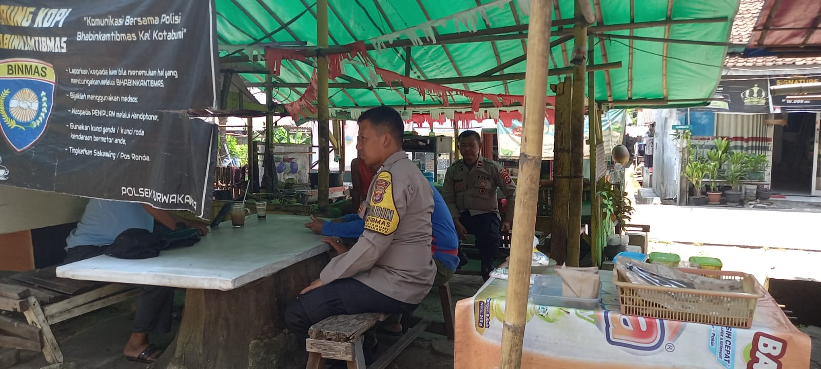 Bripka Agustoni dan Kanit Bimas Polsek Purwakarta Jalin Silaturahmi dengan Warga di Warung Kopi Bhabinkamtibmas Kelurahan Kotabumi