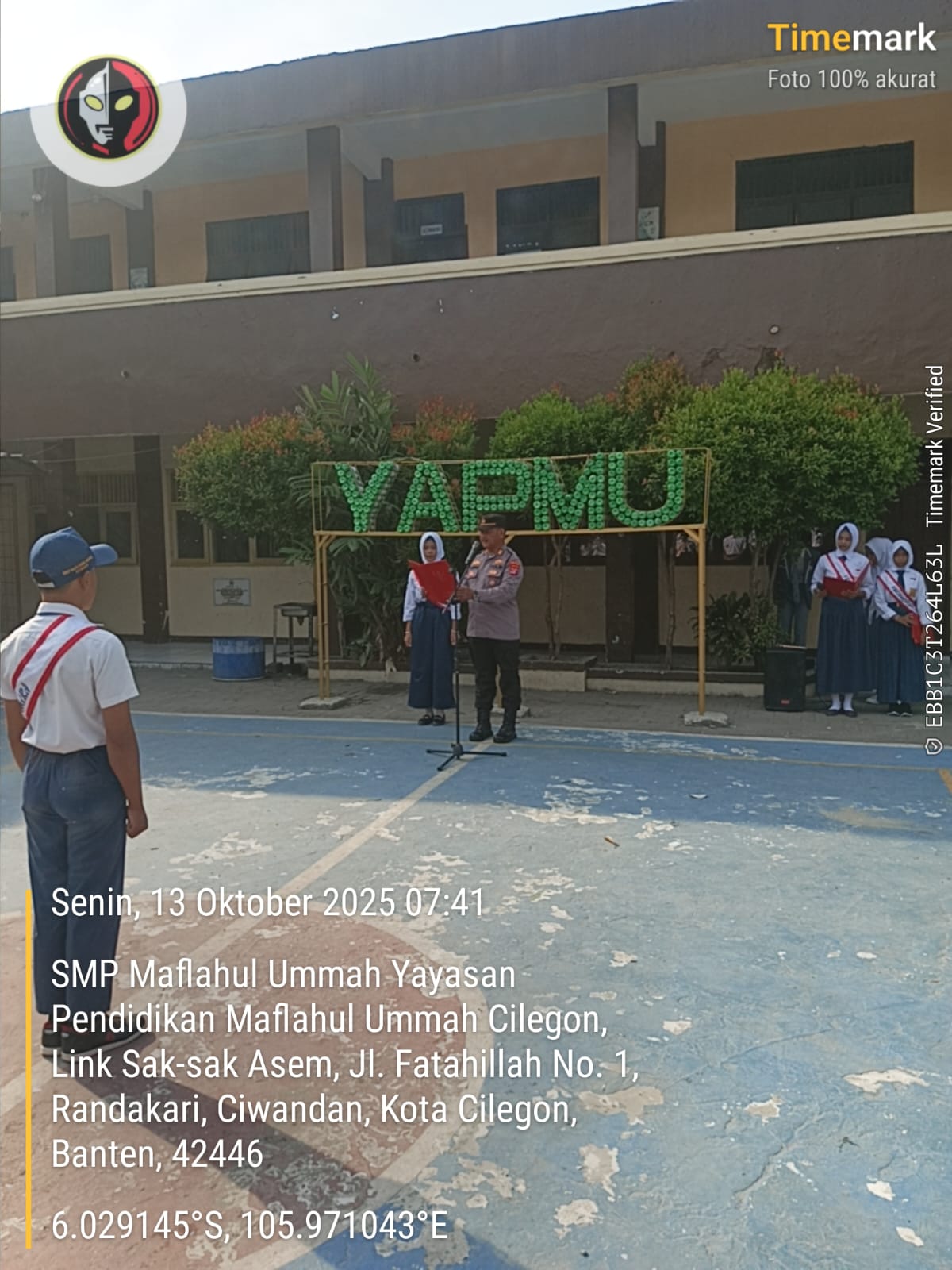 Cilegon – Kanit Samapta Polsek Ciwandan AKP Sarpan Bersama Bhabinkamtibmas Polsek Ciwandan Polres Cilegon Polda Banten Dalam Menyambangi Sekolah-Sekolah Guna Menyampaikan Pesan-pesan Kamtibmas Dan Memberikan Penyuluhan Terkait Kenakalan Remaja, Senin (13/10/2025).