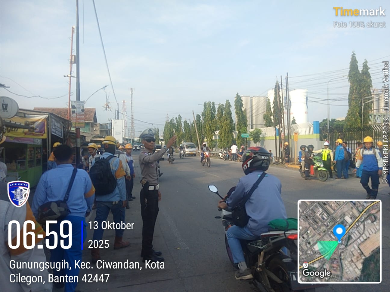 Cilegon - Personil  Polsek Ciwandan Polres Cilegon Polda Banten melaksanakan giat Strong Poin Pengaturan Lalu Lintas Disimpang Brown Kelurahan Gunung Sugih guna menciptakan ketertiban, keamanan dan Kelancaran Lalu-lintas bagi masyarakat, Senin (13/10/2025).