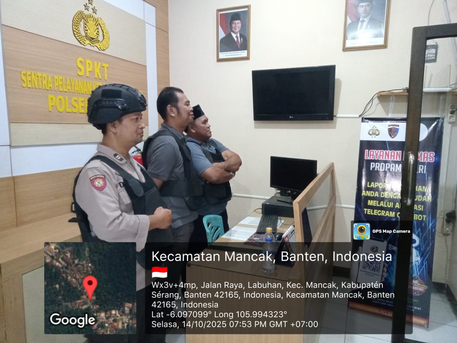 Kapolres Cilegon Polda Banten AKBP Dr. Martua Raja Taripar Laut Silitonga melalui Kapolsek Mancak  Polres Cilegon Polda Banten IPTU Khairul, menjelaskan  dalam menjaga keamanan dan ketertiban lingkungan kami terus hadir dalam segala kegiatan yang di laksanakan di daerah hukum polsek Mancak.