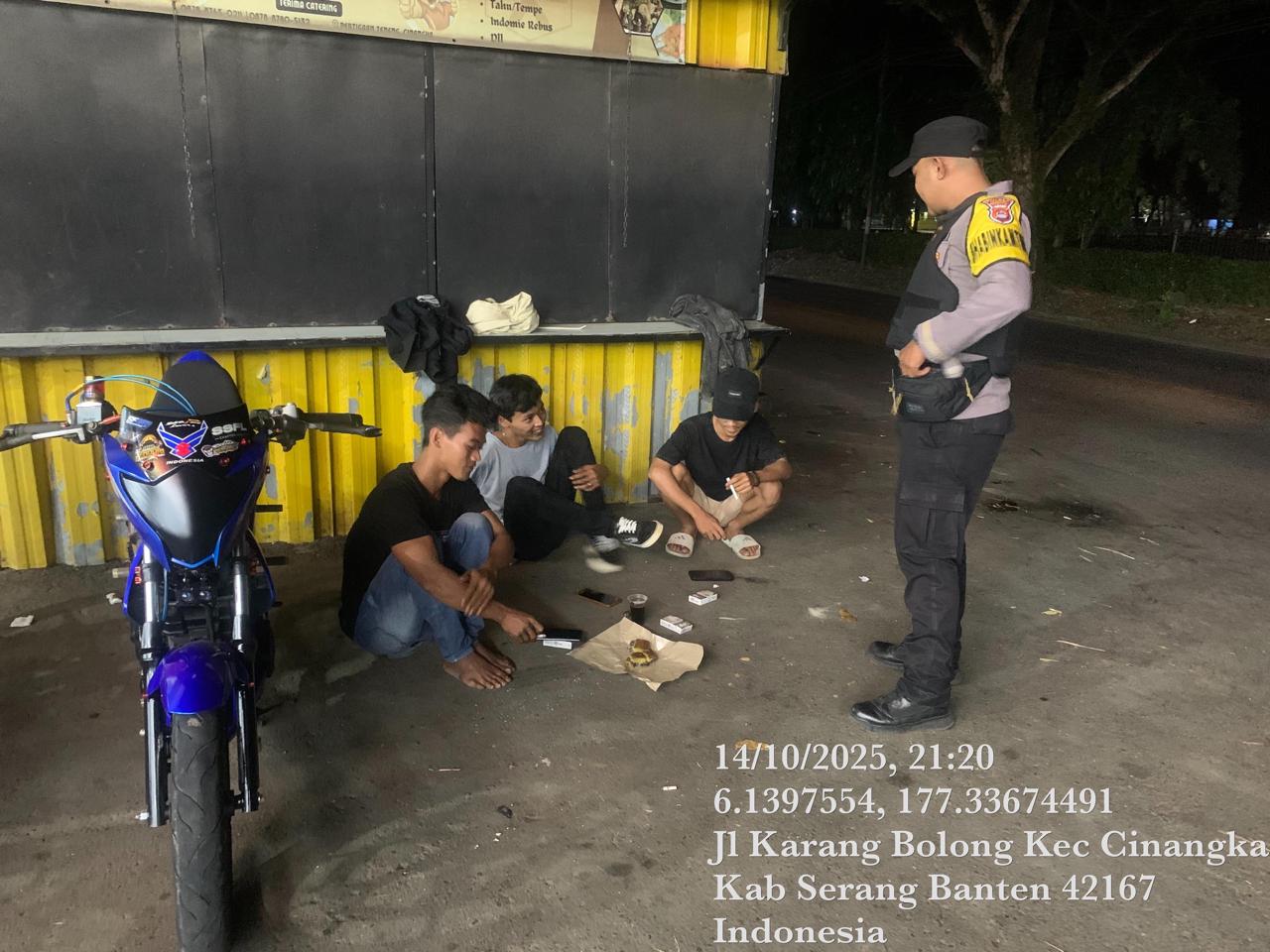 *Cilegon* – Dalam Rangka Pencegahan Kejahatan Jalanan dan Memelihara situasi keamanan dan menjaga serta memberikan rasa aman dan nyaman di masyarakat,Salah satu upaya untuk mewujudkan hal tersebut sebagaimana yang dilakukan oleh Personil Polsek Cinangka Polres Cilegon Polda Banten melaksanakan giat patroli blue light malam hari hingga menjelang pagi, Rabu (15/10/2025).