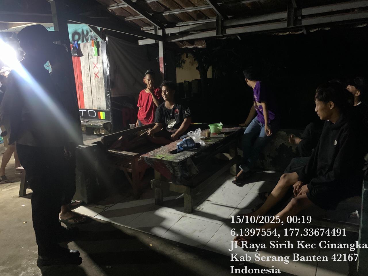 *Cilegon* – Dalam Rangka Pencegahan Kejahatan Jalanan dan Memelihara situasi keamanan dan menjaga serta memberikan rasa aman dan nyaman di masyarakat,Salah satu upaya untuk mewujudkan hal tersebut sebagaimana yang dilakukan oleh Personil Polsek Cinangka Polres Cilegon Polda Banten melaksanakan giat patroli blue light malam hari hingga menjelang pagi, Rabu (15/10/2025).