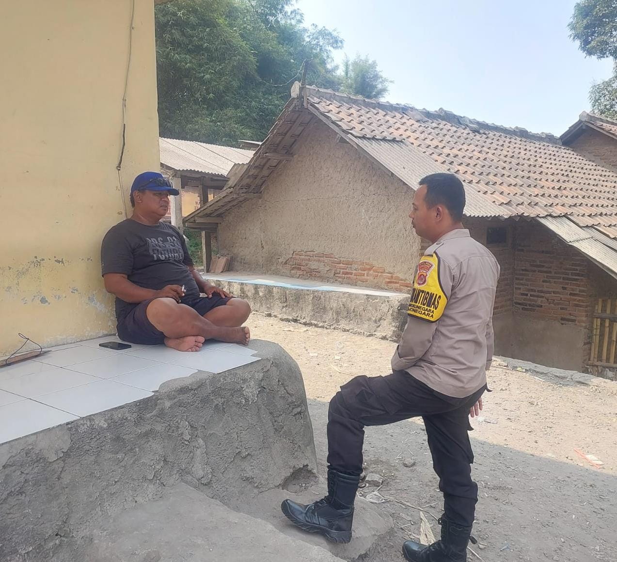 Bhabinkamtibmas Desa Mangkunegara Bripka Bambang Pastikan Lingkungan Masyarakat Aman dan Sosialisasikan call center 110