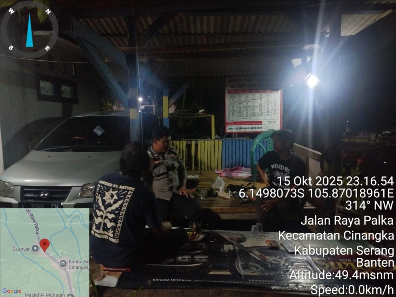 *Polres Cilegon* || Personil Bhabinkamtibmas Polsek Cinangka melaksanakan Program Komandan Wish Kapolda Banten RONDA SATKAMLING menyampaikan komunikasi dengan Petugas Siskamling agar berperan aktif dalam menciptakan Harkamtibmas yang aman dan Kondusif, Kamis (16/10/2025).
