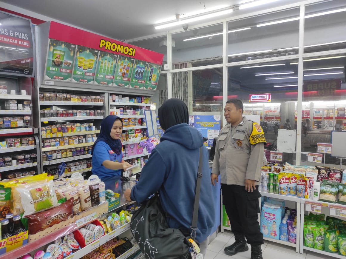 Cilegon ~ Patroli Malam hari,  Bhabinkamtibmas Polsek Bojonegara Polres Cilegon Polda Banten melaksanakan patroli wilayah Malam hari dan sambang ke Indomart Mart di  Desa Kertasana, Jumat  (17/10/2025)