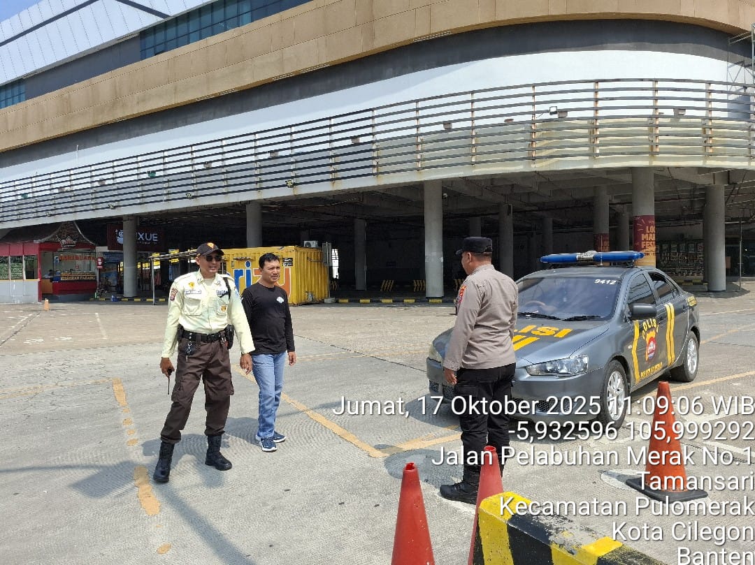 Cilegon - Personel Polsek Kskp Merak Polres Cilegon Polda Banten melaksanakan sambang dan patroli kawasan pelabuhan merak dalam rangka menjaga Harkamtibmas di Kawasan Pelabuhan Merak, Jumat (17/10/2025).