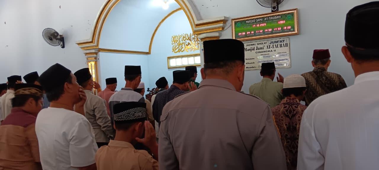 *POLRES CILEGON* - Kapolsek Cinangka Polres Cilegon Polda Banten dan Jajaran melaksanakan giat Juma't keliling dalam rangka silaturahmi menjalin kemitaraan dan menjaga Harkamtibmas di Desa Binaannya sebagai bentuk mendukung Program Quick Wins Presisi Polri, Jumat (17/10/2025).