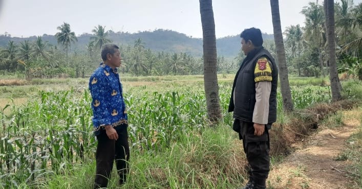 Babinkamtibmas Kelurahan Tegalbunder dari Polsek Purwakarta, Polres Cilegon, melakukan pengecekan langsung terhadap tanaman jagung di wilayah Kelurahan Tegalbunder