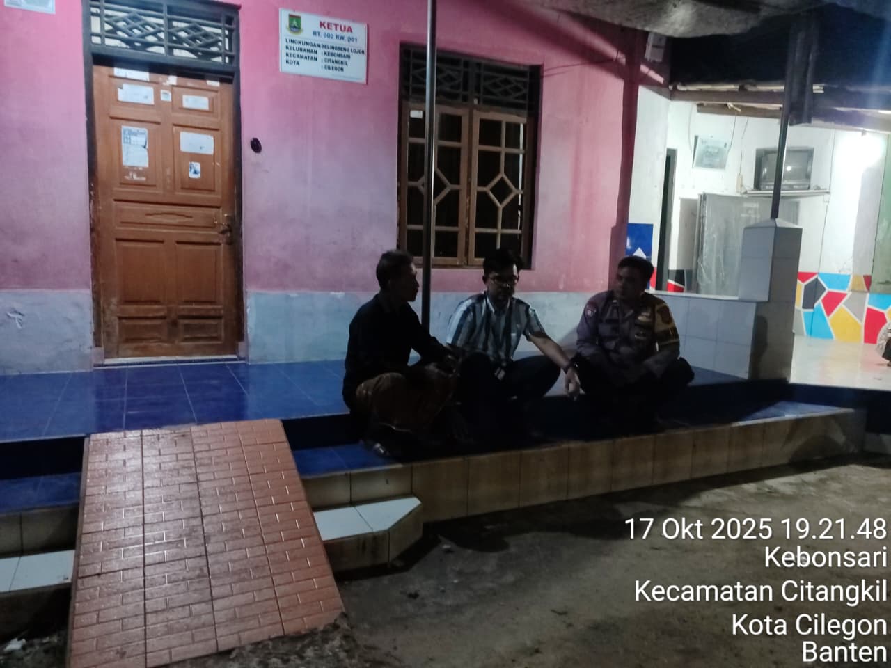 Cilegon - Bhabinkamtibmas Polsek Ciwandan Polres Cilegon Polda Banten Lakukan Sambang Malam guna mengantisipasi aksi kejahatan pada daerah binaan dan memberikan rasa aman dan nyaman kepada warga binaan, Sabtu (18/10/2025).