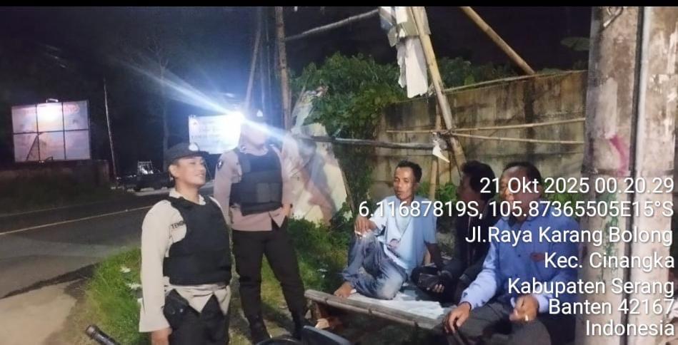 *Cilegon* – Dalam Rangka Pencegahan Kejahatan Jalanan dan Memelihara situasi keamanan dan menjaga serta memberikan rasa aman dan nyaman di masyarakat,Salah satu upaya untuk mewujudkan hal tersebut sebagaimana yang dilakukan oleh Personil Polsek Cinangka Polres Cilegon Polda Banten melaksanakan giat patroli blue light malam hari hingga menjelang pagi, Selasa (21/10/2025).