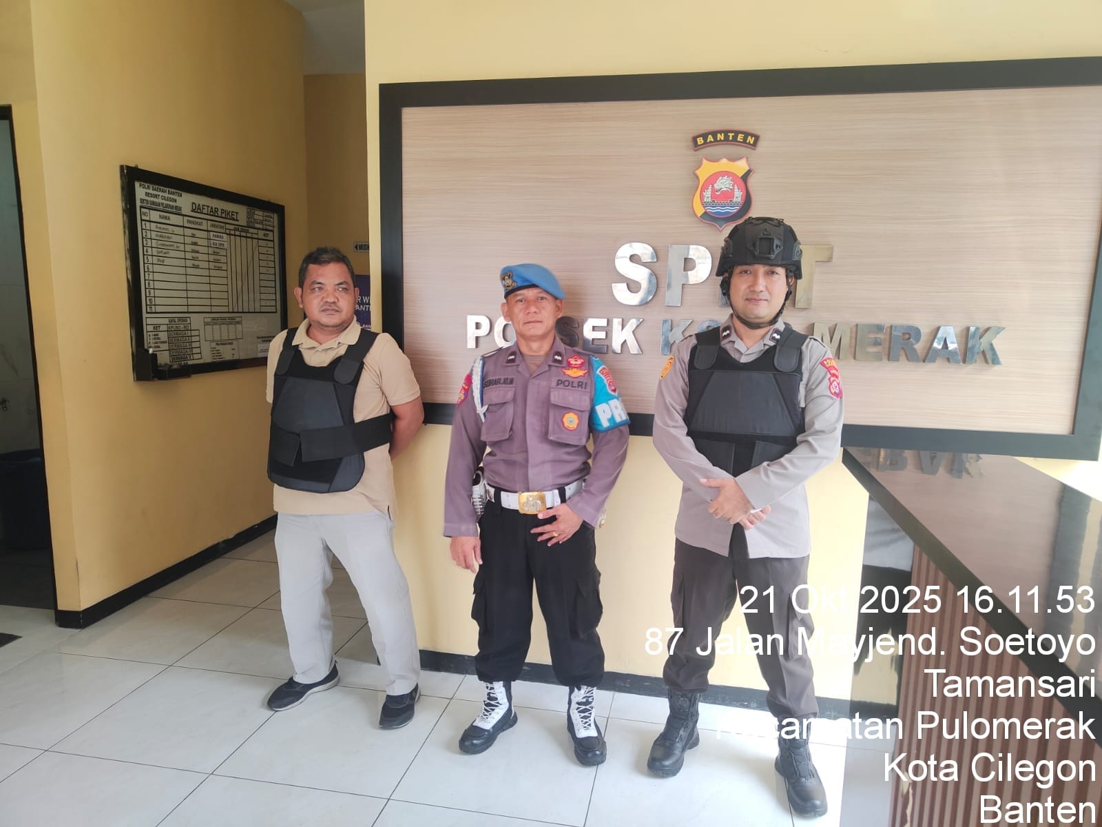 Cilegon - Personel piket jaga Polsek Kskp Merak Polres Cilgon Polda Banten melaksanakan siaga 1 Polsek pelaksanaan Sispam Mako oleh piket siaga dipimpin oleh Kspk Polsek Kskp Merak Polres Cilegon Polda Banten, Selasa (21/10/2025).