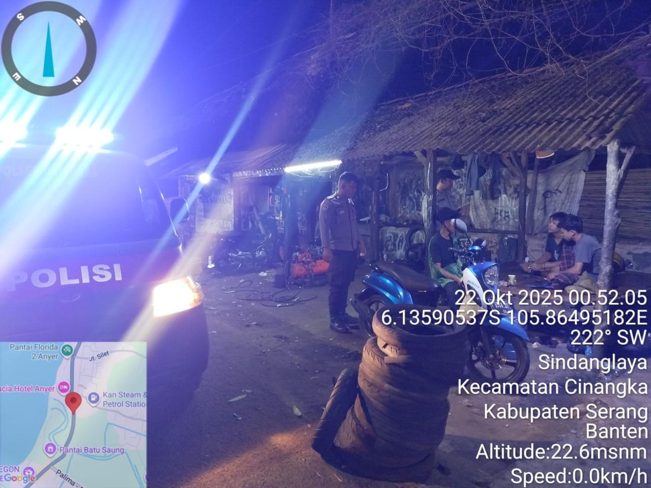 *Cilegon* – Dalam Rangka Pencegahan Kejahatan Jalanan dan Memelihara situasi keamanan dan menjaga serta memberikan rasa aman dan nyaman di masyarakat,Salah satu upaya untuk mewujudkan hal tersebut sebagaimana yang dilakukan oleh Personil Polsek Cinangka Polres Cilegon Polda Banten melaksanakan giat patroli blue light malam hari hingga menjelang pagi, Rabu (22/10/2025).