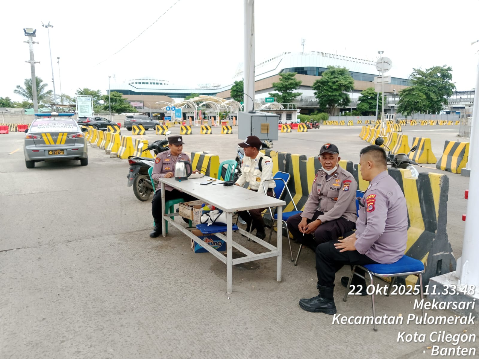 Cilegon - Personel Polsek Kskp Merak Polres Cilegon Polda Banten melaksanakan sambang dan patroli kawasan pelabuhan merak dalam rangka menjaga Harkamtibmas di Kawasan Pelabuhan Merak, Rabu (22/10/2025).
