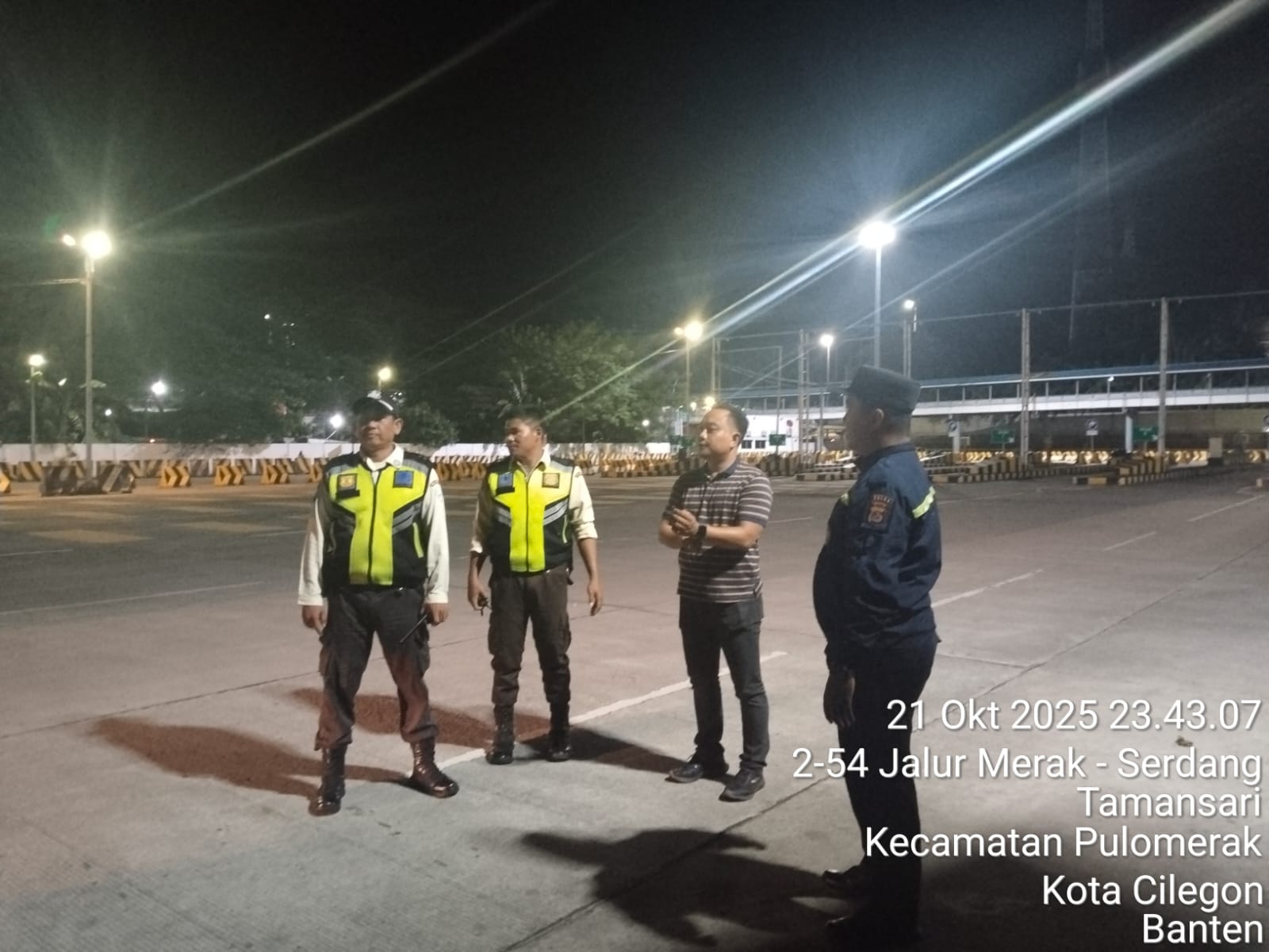 Cilegon - Personil Polsek Kskp Merak Polres Cilegon melaksanakan patroli di kawasan pelabuhan merak memberikan rasa aman dan damai, Rabu (22/10/2025)