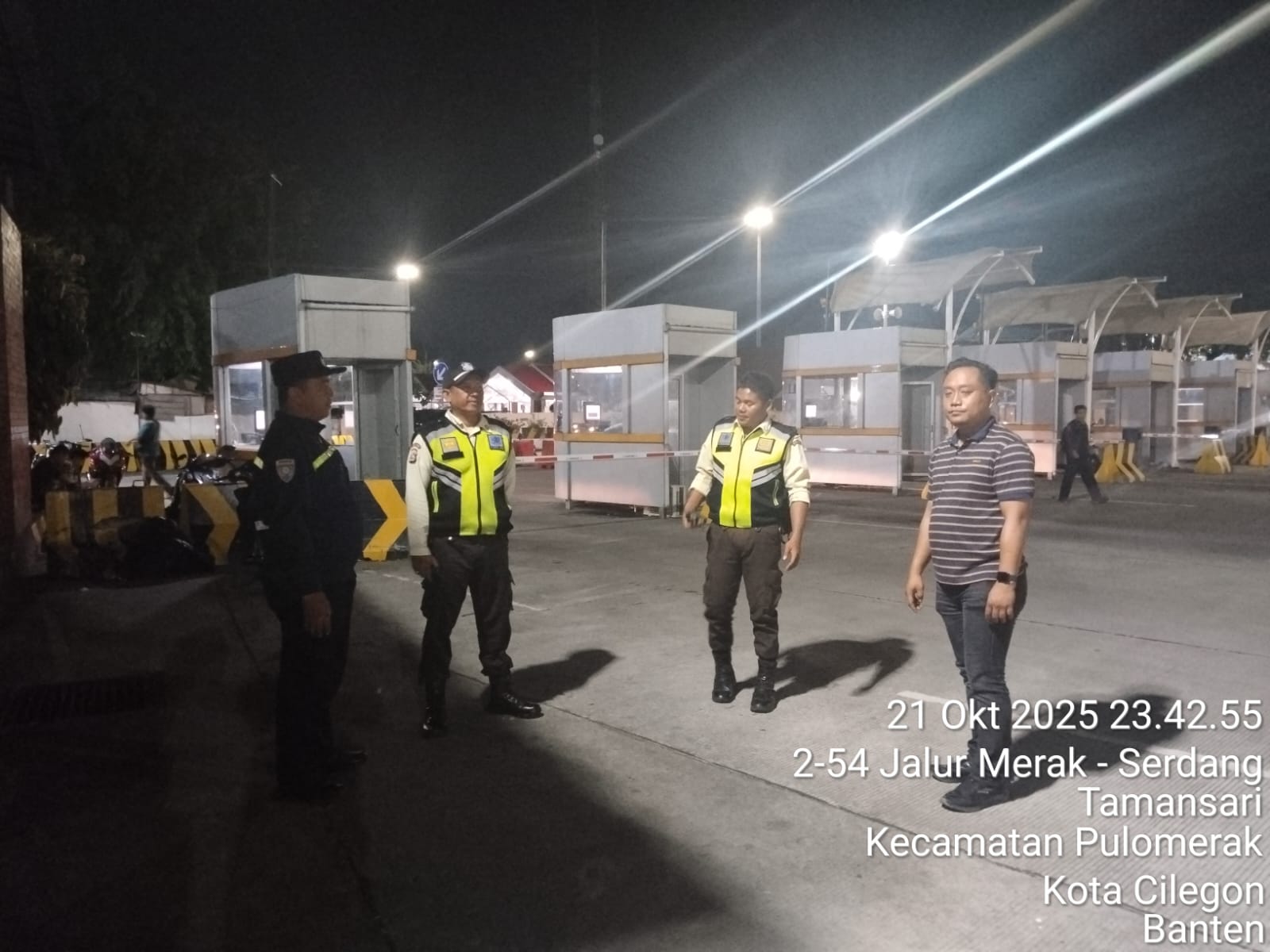 Cilegon - Personil Polsek Kskp Merak Polres Cilegon melaksanakan patroli di kawasan pelabuhan merak memberikan rasa aman dan damai, Rabu (22/10/2025)