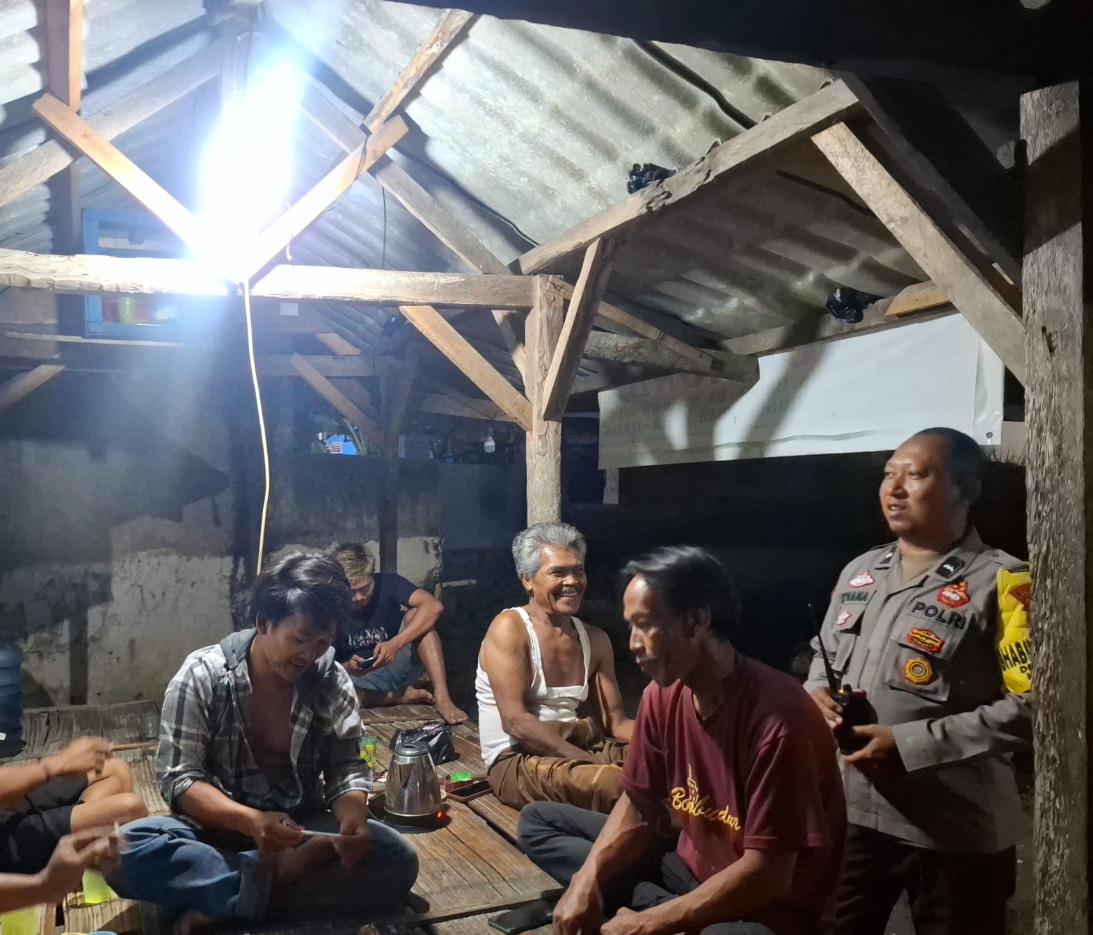 Polsek Anyar Dialogis Kepada Warga Yang Sedang Melaksanakan Ronda siskamling