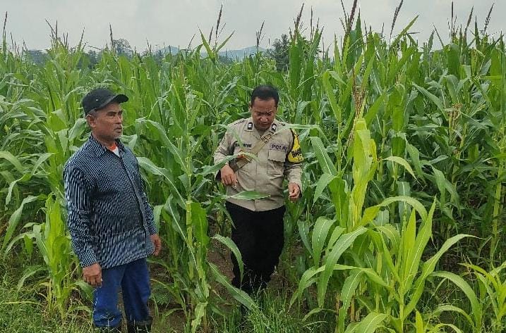 Bhabinkamtibmas Polsek Anyar Bersama Petani Cek Lahan Tanaman Jagung