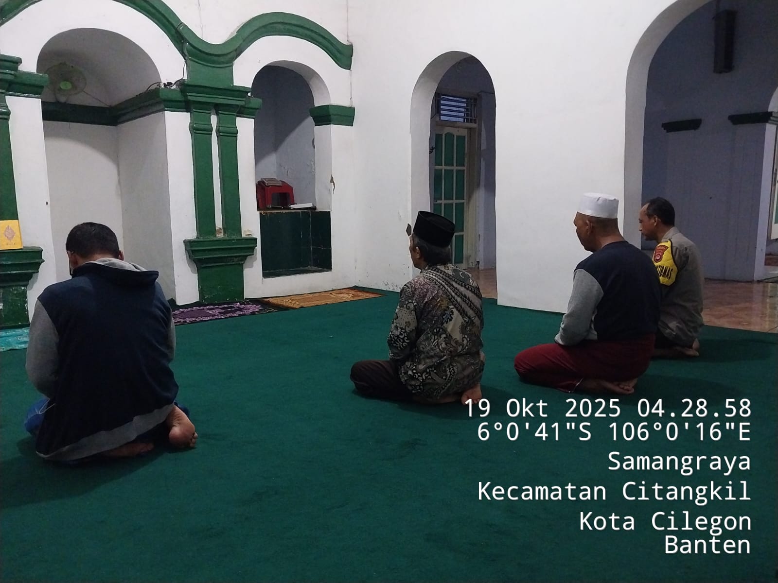 Cilegon – Bhabinkamtibmas Polsek Ciwandan Polres Cilegon Polda Banten menggelar kegiatan Pembinaan Rohani dengan Sholat subuh keliling di Masjid Yang ada Di Daerah hukum Polsek Ciwandan Polres Cilegon Polda Banten, Rabu (22/10/2025).