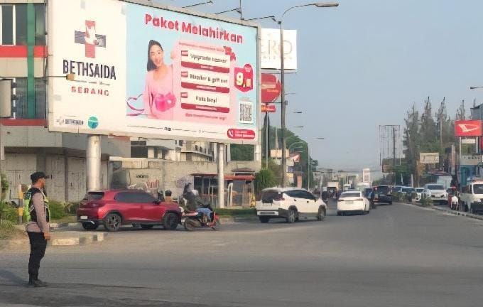 Kapolres Cilegon Polda Banten AKBP Dr. Martua Raja Taripar Laut Silitonga Melalui Kapolsek Cibeber Polres Cilegon Polda Banten AKP Atep Mulyana Mengatakan Dalam Pelayanan Masyarakat demi Kelancaran Arus Lalu-lintas di Pagi hari Anggota Polsek Cibeber Polres Cilegon Polda Banten tetap melakukan kegiatan Pengaturan arus lalu-lintas yang rutin dilaksanakan guna mencegah Kemacetan arus lalu-lintas yang meningkat khusus nya pada Pagi hari di jalur Traffic Light PCI.